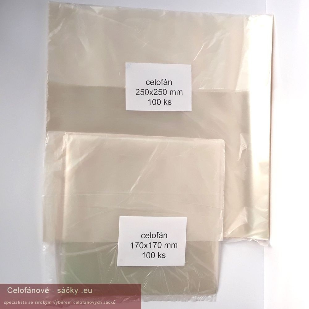 Průhledné celofánové archy (přířezy) z pravého celofánu (celulózy, buničiny). Síla 0,02 mm. Pro své vlastnosti používán zejména pro balení potravin a dárků. Prodej pouze po celých balení. 1 balení = 100 kusů archů. Výroba rozměru na zakázku možná od 5000 ks s dodáním 5-7 dnů.