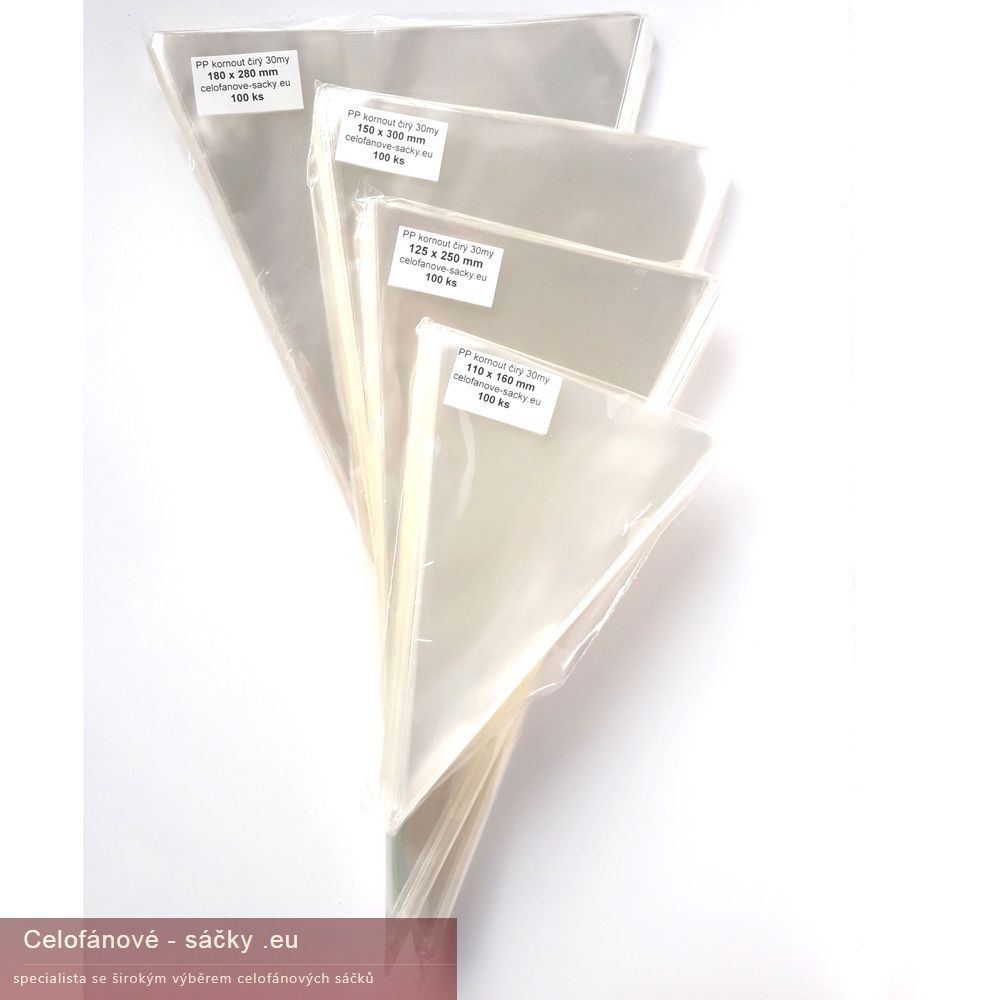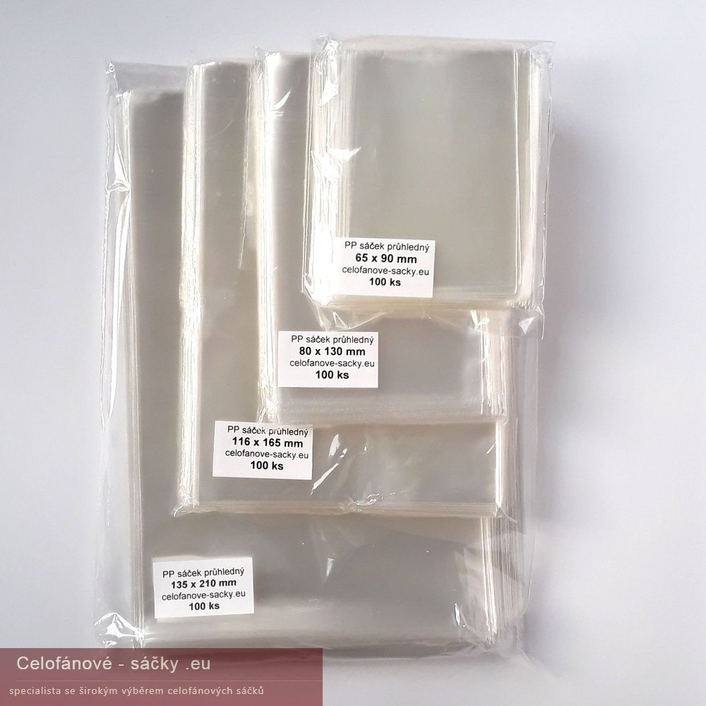 průhledné šustivé lesklé z orientovaného polypropylenu mnoha rozměrů. Téměř jako z pravého celofánu